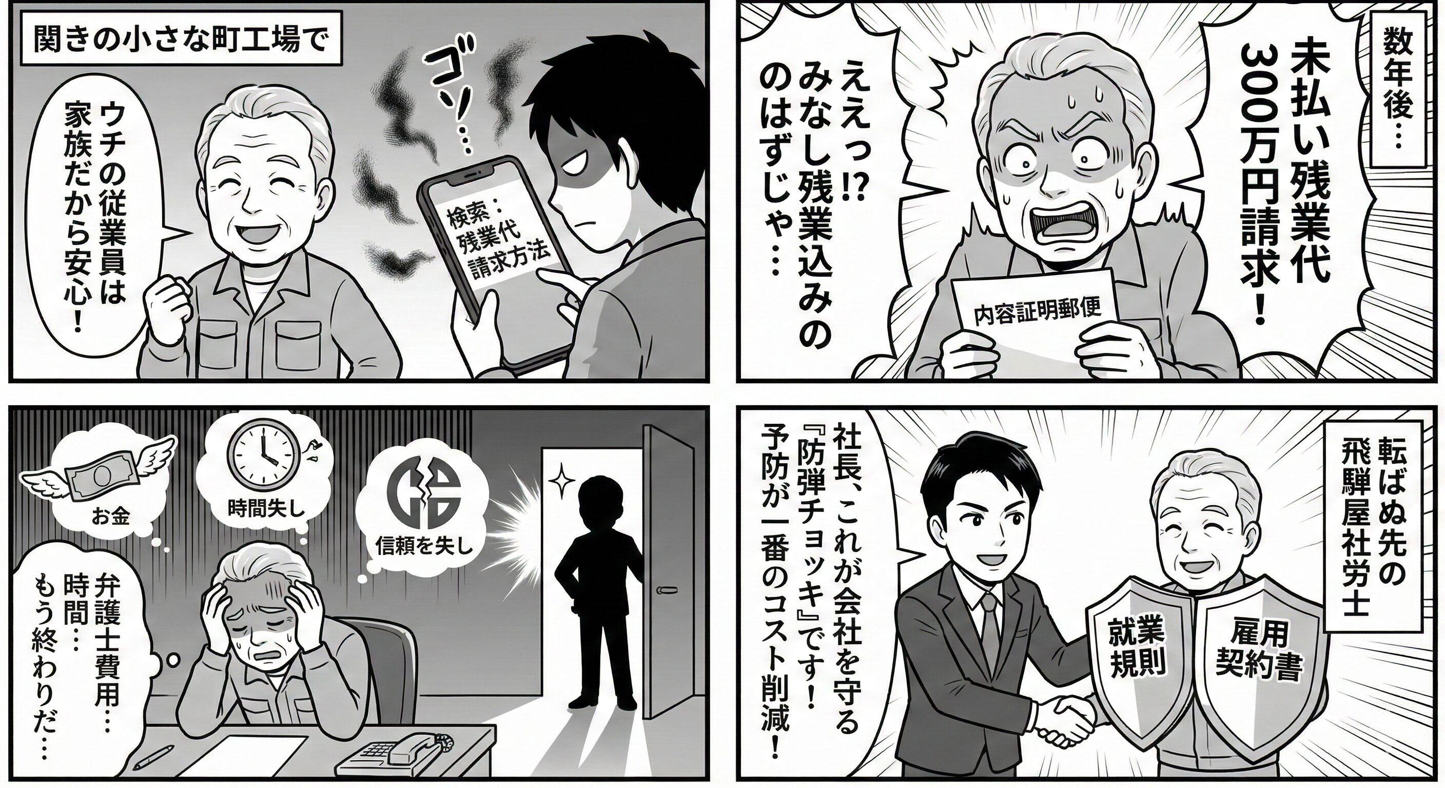 トラブルの相談に来られる社長は、皆さんそう仰います。 関市の人情味あふれる工場や建設現場でも、残念ながら労務トラブルは増え続けています。