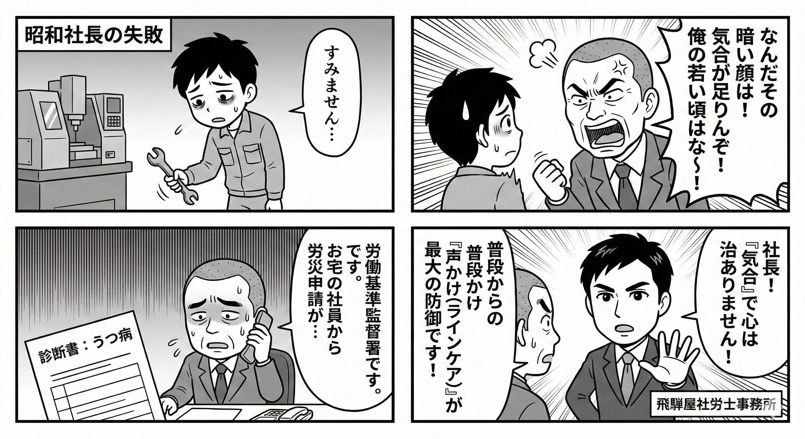 たったこれだけです。 しかし、これをせずに「やる気がないなら帰れ!」と叱責してしまうと、それがトドメとなって発症し、**「パワハラによる労災」**が確定してしまいます。